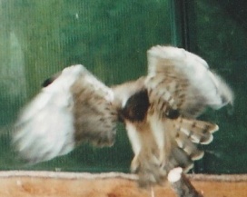 Man findet, dass, „die erbeutete Schlange“ „mit dem Kopf voraus geschluckt“ und dass „bei grösseren Schlagen“ „oft noch eine sich bewegende Schwansspitze aus“ dem Schnabel hängt („Der Falkner“: (2024)).
