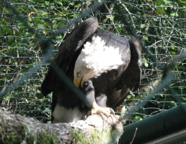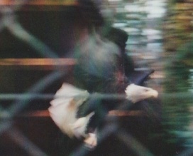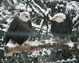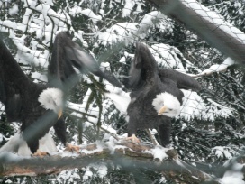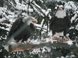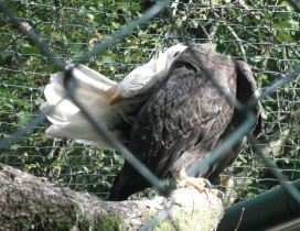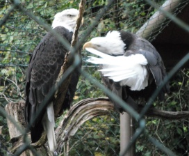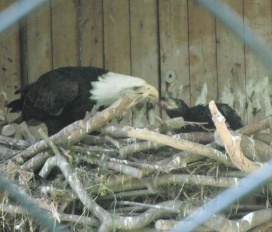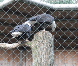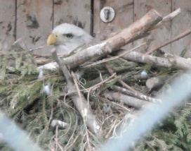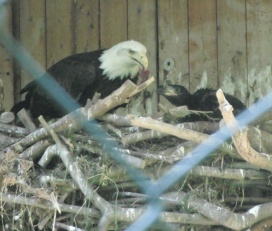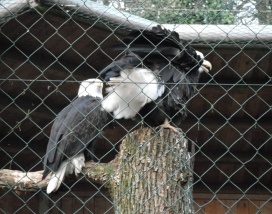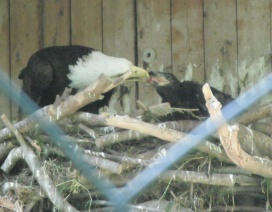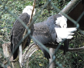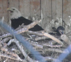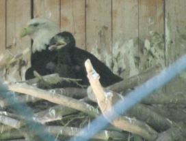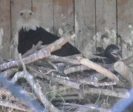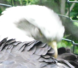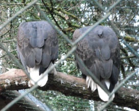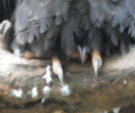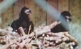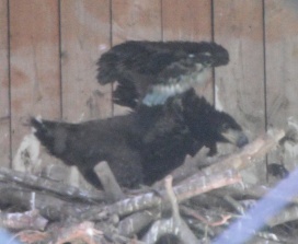 ... das Männchen sträubt das Gefieder (Verteidigungs- oder Drohgebärde(?)) nachdem das Weibchen auf dem Nest brütet. |