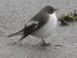 Grauschnäpper (oder Grauer Fliegenschnäpper), lat. Muscicapa striata, unterhalb dieser Zeilen (erste Brut; „Gastvogelfamilie“; Aufnahme: ”X”.: Auch bei diesen Fotos ist jede weitere Verbreitung, Vervielfältigung, Verwertung in welcher und / oder durch welche Art und / oder Weise auch immer ist untersagt.