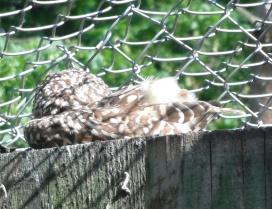 Die Oberseite ist sandfarben (Gosler: „Die Vögel der Welt“) oder der Rücken ist braungrau und weiss gefleckt ("Lebendige Wildnis, Tiere der Nadelwälder" (1994)) oder die Oberseite ist braun und weiss gefleckt („Faszination Tier & Natur“ (Loseblatt-Sammelwerk)) oder die Oberseite ist braun und weiss bis ockerfarben gefleckt (Mikkola: „Handbuch Eulen der Welt“ (2013)) oder die Oberseite ist braun und weiss bis blassockerfarben gefleckt (König/Weick: „Owls of the World“ (2008); Mikkola: „Owls of the World“ (2012)) oder die Oberseite ist rötlichgraubraun, weiss getüpfelt (Smolik: „rororo Tierlexikon“: Band 3: Vögel; (1969)) oder die Oberseite ist „braun mit grossen weissen Flecken“ versehen („Washingtoner Artenschutzabkommen, Erkennungsbuch“ Band 3 (1993)).