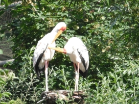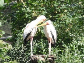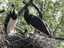 Familie Störche, lat. Ciconiidae Tribus: Eigentliche Störche, lat. Ciconiini Schwarzschnabelstorch, lat. Ciconia boyciana Maguaristorch, lat. Ciconia maguari Wollhalsstorch (oder Wollkopfstorch oder Afrikanisch-Indischer Wollhalsstorch), lat. Ciconia episcopus, (früher Dissoura episcopus) Unterart: Asien-Wollhalsstorch (oder Asiatischer Wollhalsstorch), lat. Ciconia episcopus episcopus, (früher Dissoura episcopus) Abdimstorch (oder Regenstorch), lat. Ciconia abdimii Höckerstorch (oder Borneo-Wollhalsstorch), lat. Ciconia stormi Sattelstorch (oder Afrika-Sattelstorch), lat. Ephippiorhynchus senegalensis Marabu (oder Afrika-Marabu), lat. Leptoptilos crumeniferus Sundamarabu (oder Sunda-Marabu oder Kleiner Adjutant), lat. Leptoptilos javanicus