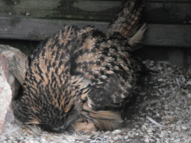 Andererseits konnte durch eine IR-Videokamera dokumentiert werden, dass die 3 junge Uhus aus den Eiern gestaffelt nach „33, 32 bzw. 35“ Tagen schlüpften (Tagungsbroschüre der AG-Eulen zur 33. Jahrestagung; Eulenrundblick 68).